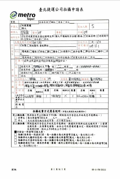 劇中捷運畫面,特別向台北捷運局申請拍攝許可,把詳細的分鏡圖送至相關單位審查批准。